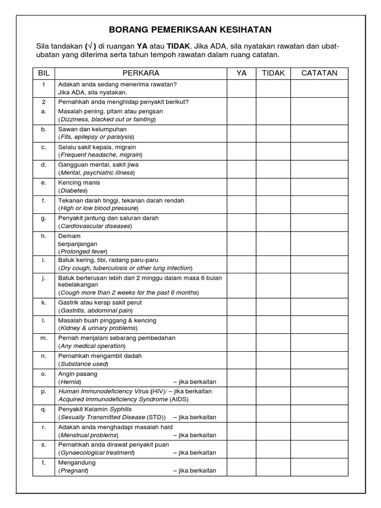 Borang Pemeriksaan Kesihatan Penjawat Awam