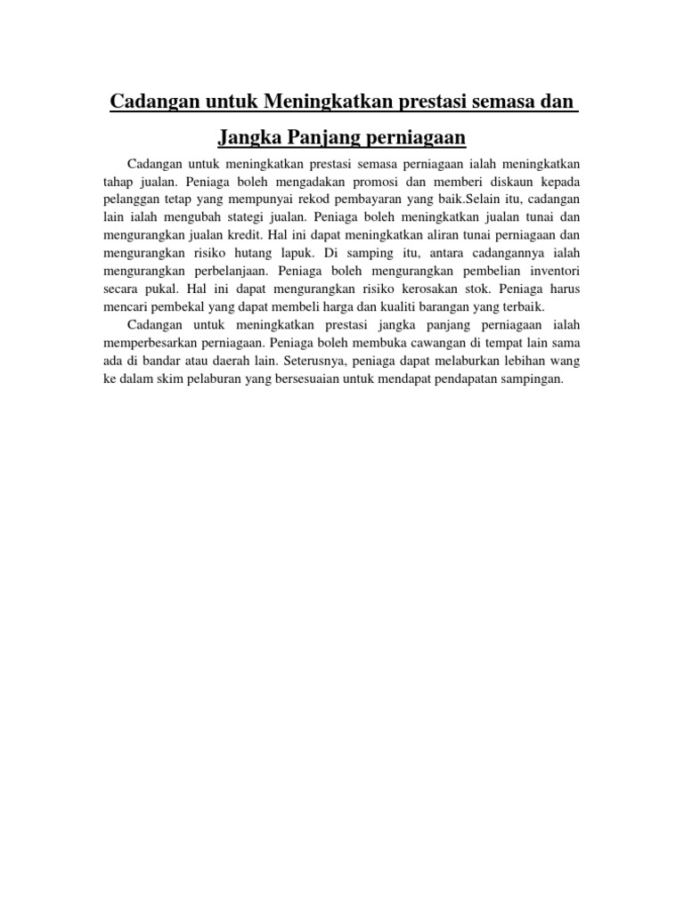 Cadangan Untuk Meningkatkan Prestasi Semasa Dan Jangka Masa Panjang Pdf Document