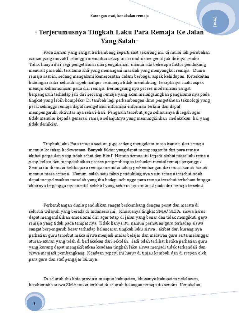 Karangan Esai Kenakalan Remaja