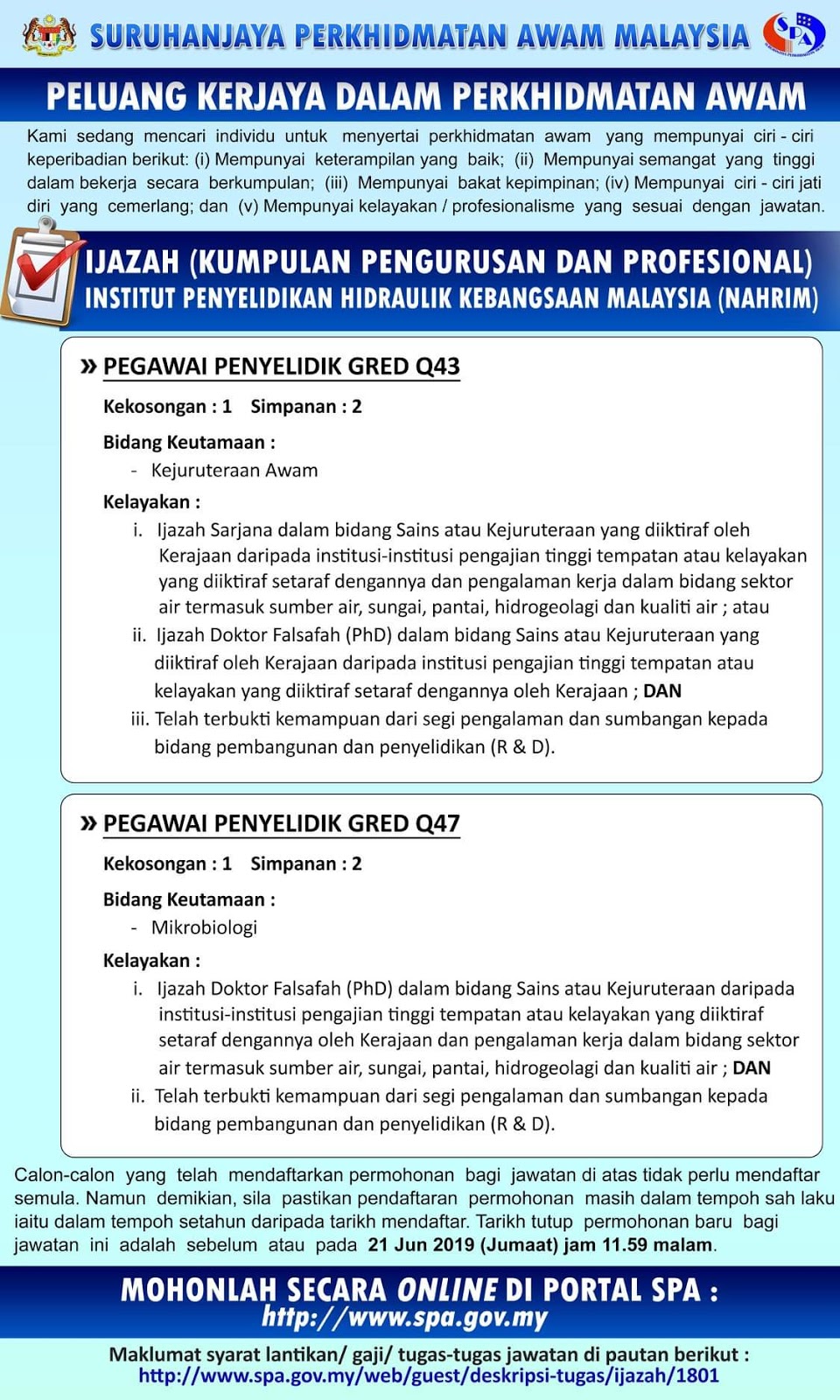 Jawatan Kosong Terkini Institut Penyelidikan Hidraulik Kebangsaan Malaysia Nahrim Tarikh Tutup 21 Jun 2019 Ejobskini Com Portal Jawatan Kosong Kerajaan Dan Swasta