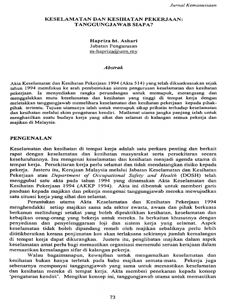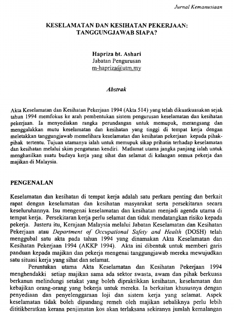 Pdf Keselamatan Dan Kesihatan Pekerjaan Tanggungjawab Siapa