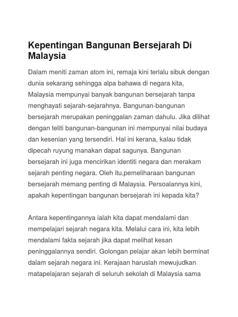 Kepentingan Mengekalkan Bangunan Bersejarah Di Malaysia Essaytix