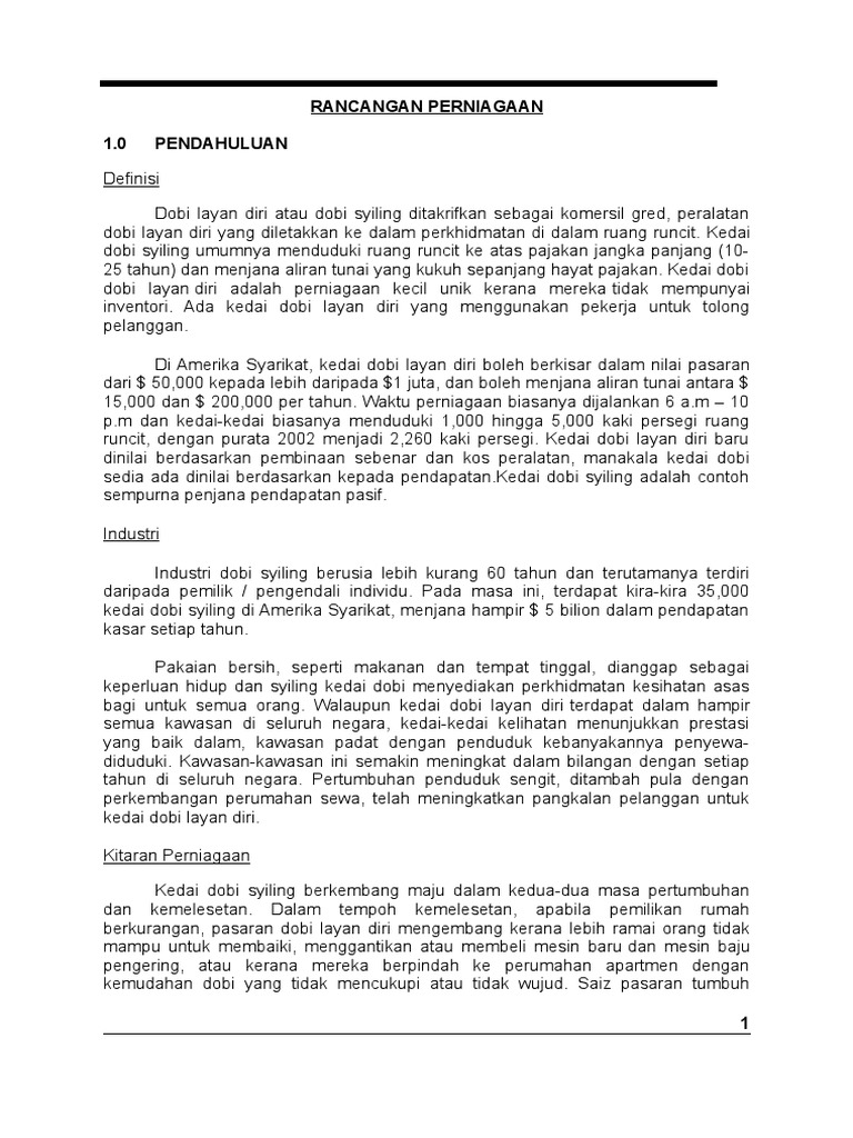 Contoh Kertas Kerja Rancangan Perniagaan Dobi Layan Diri Kerkosi
