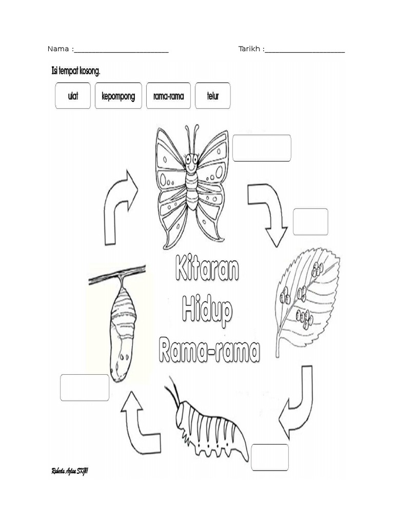 Lembaran Kerja Kitaran Hidup Rama Rama Prasekolah