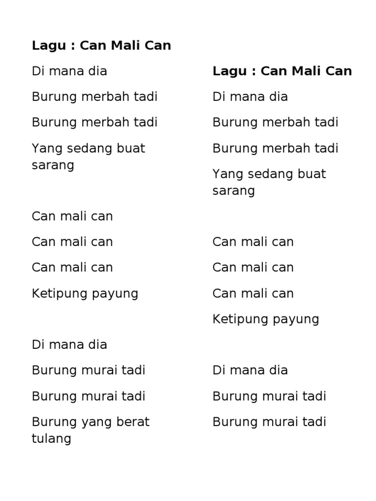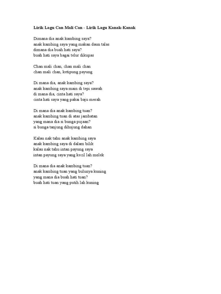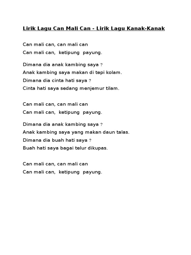 Lagu Rakyat Tradisional Can Mali Can Youtube