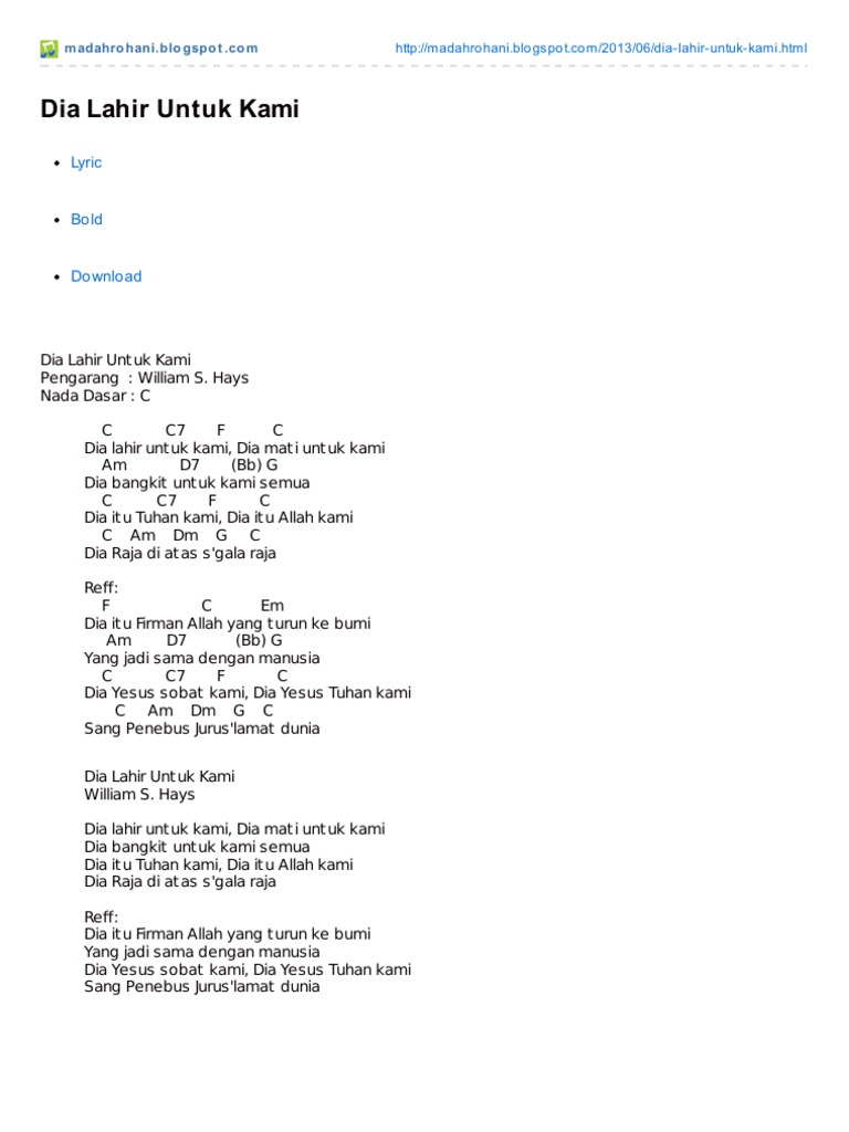 Lirik Chord Lagu Dia Lahir Untuk Kami Kidung Com