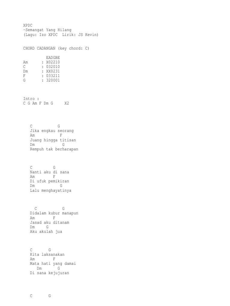 Xpdc Semangat Yang Hilang Unmetal Audio Hq Chords Chordify