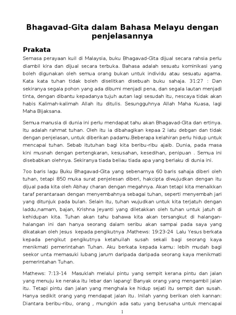 Bhagavad Gita Dalam Bahasa Melayu Dengan Penjelasannya