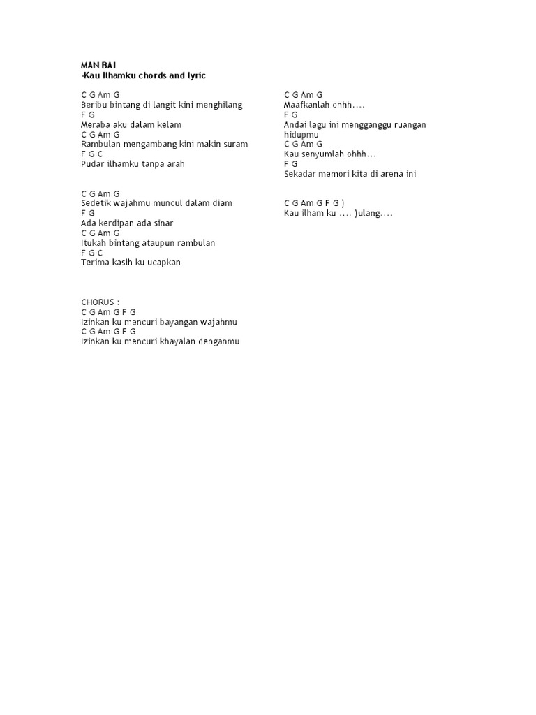 Man Bai Kau Ilhamku Lirik Dan Chord