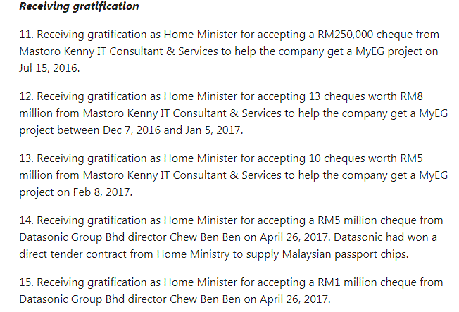 Detailed Zahid Hamidi S Cbt And Corruption Charges Malaysia Malay Mail