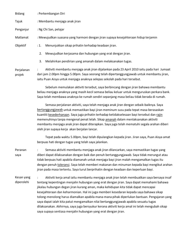 Contoh Laporan Kerja Amal Contoh 1 Contoh Sahaja Jangan Tiru Bidang Perkembangan Diri Tajuk Membantu Menjaga Anak Jiran Penganjur Ah Beng Pelajar Course Hero