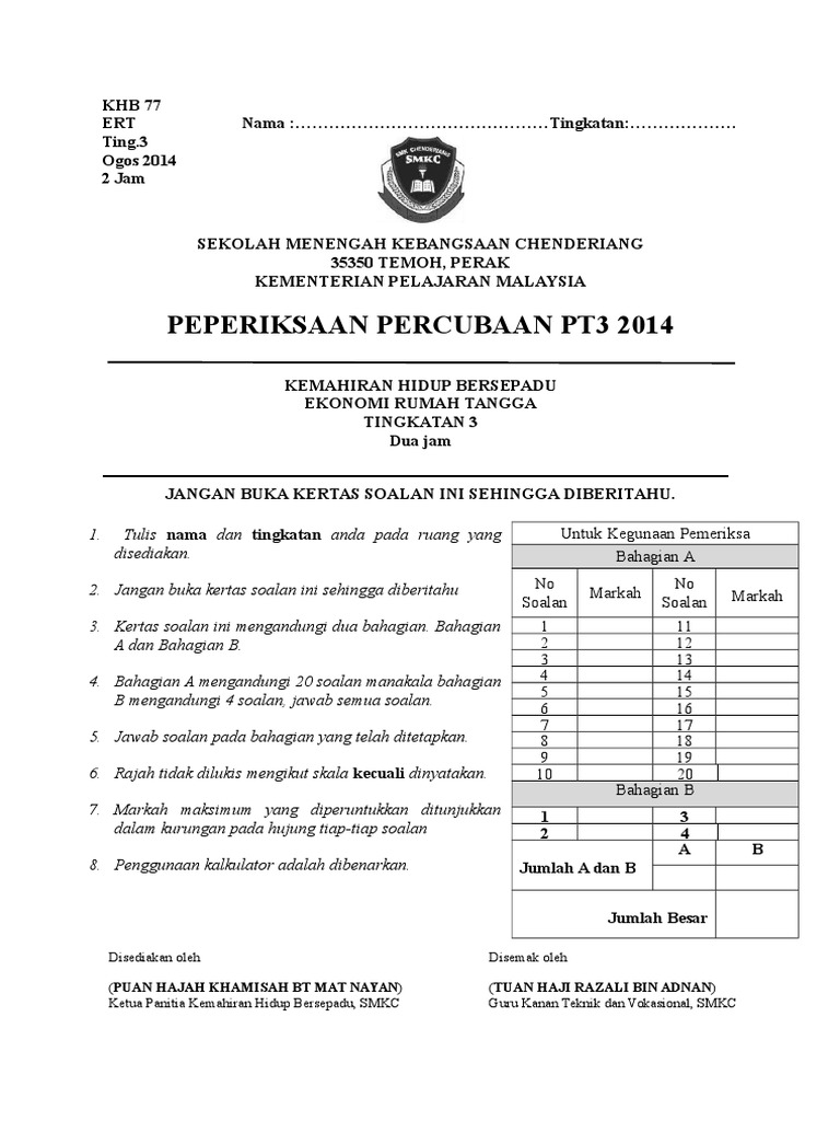 Contoh Muka Depan Soalan Pt3 Malacca G