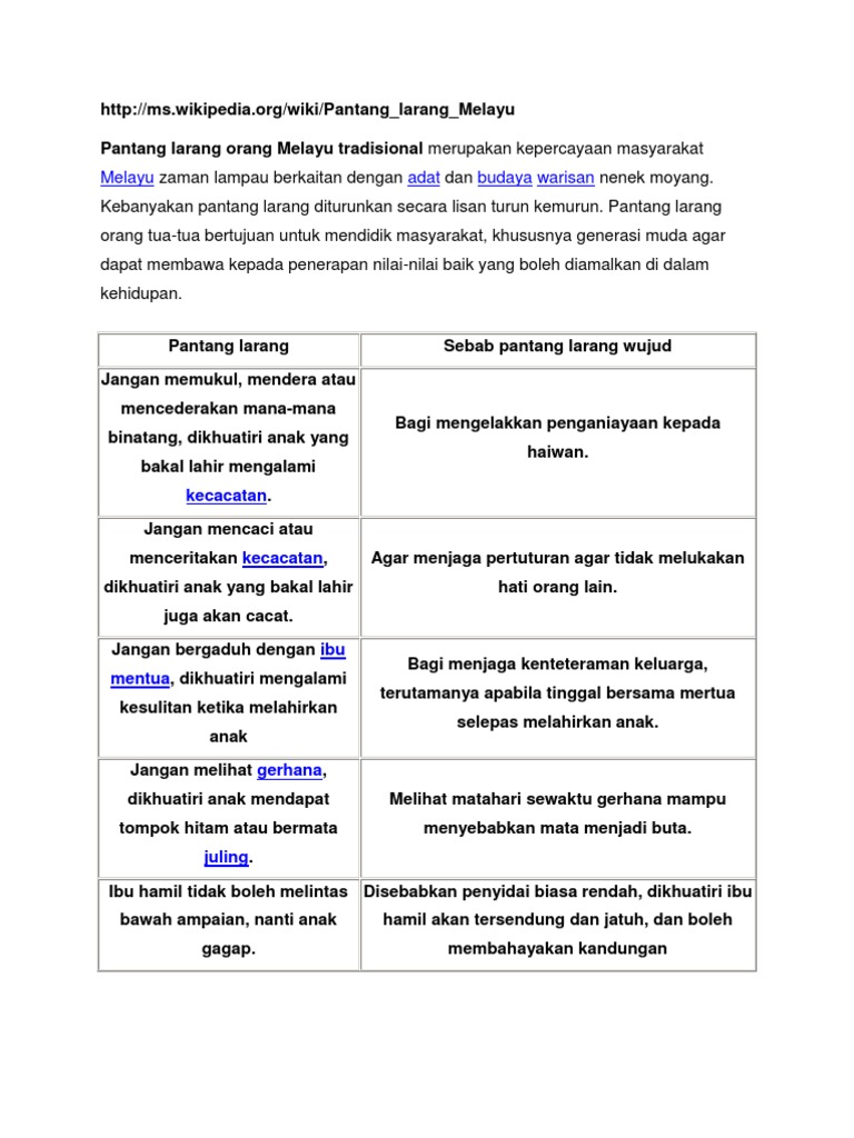 Pantang Larang Masyarakat Melayu