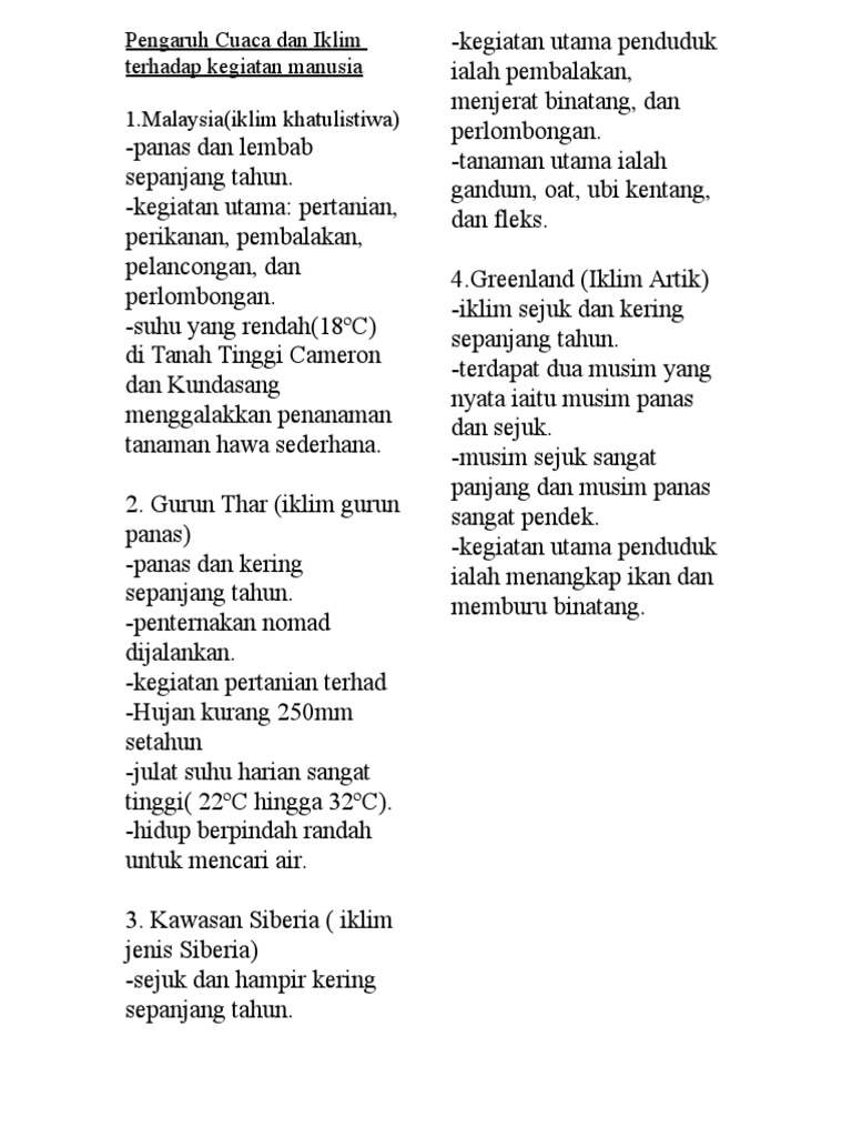 Pengaruh Cuaca Dan Iklim Terhadap Kegiatan Manusia