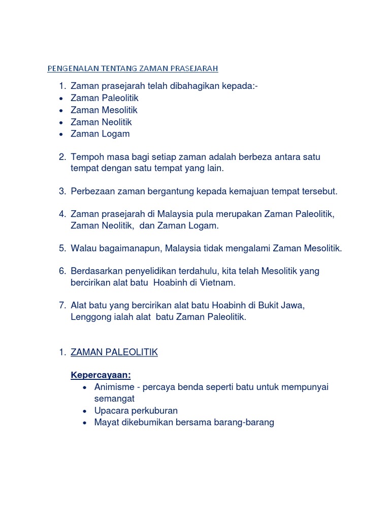 Pengenalan Tentang Zaman Prasejarah Docx