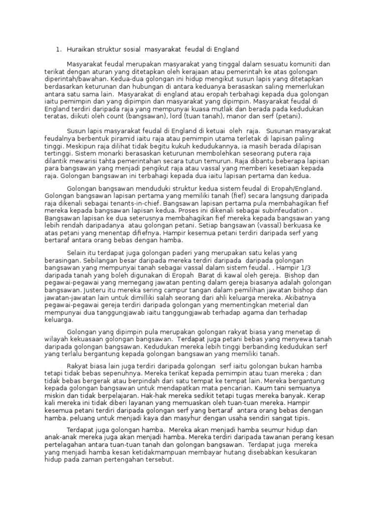 1 Huraikan Struktur Sosial Masyarakat Feudal Di England Doc