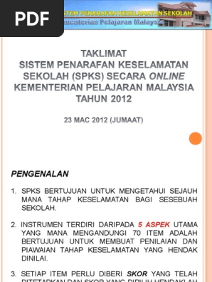 Aplikasi Dalam Talian Kpm Spks Sistem Penarafan Keselamatan Sekolah