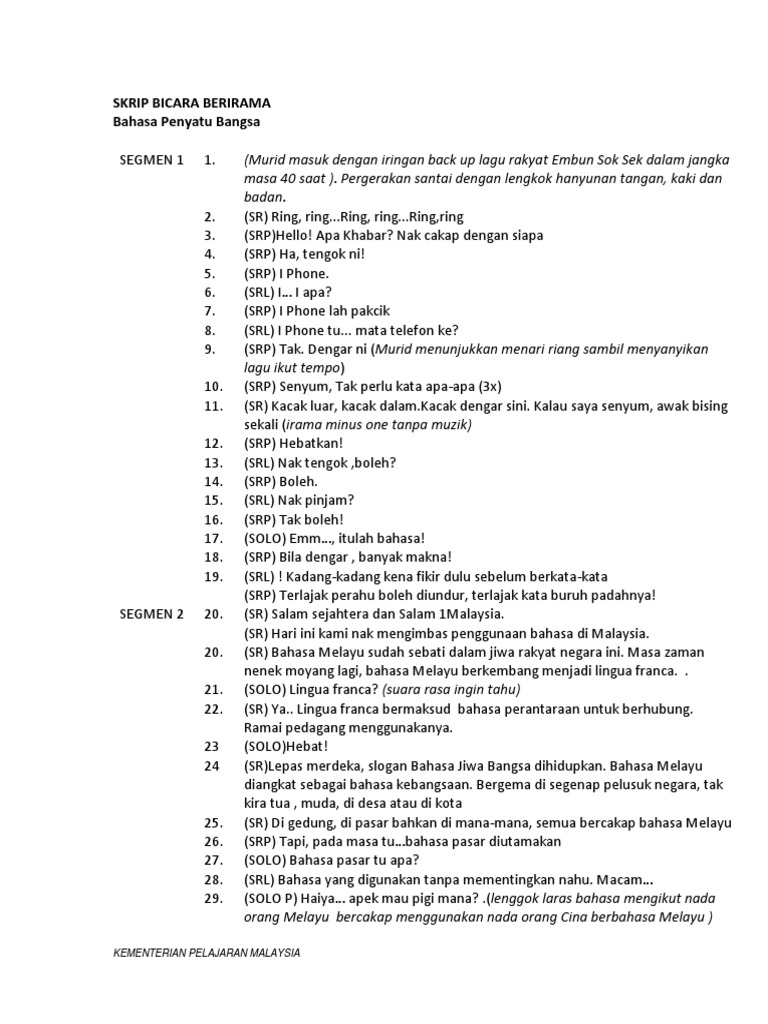 Skrip bicara berirama sekolah rendah. Minta keizinan untuk ambil skrip ini untuk persembahan sekolah saya. Pasukan bicara berirama sk seri berang berjaya mengekalkan kejuaraan apabila sekali lagi dinobatkan johan pertandingan bicara berirama sekolah rendah peringkat daerah hulu terengganu. Pasukan pewaris sk jalan empat bangi selangor telah menjadi johan pertandingan bicara berirama sekolah rendah peringkat kebangsaan tahun 2019 yang berlangsu. Idea memang idea lapuk pasal alam sekitar malu weh dengan orang lain yang ada idea best best dan fresh.